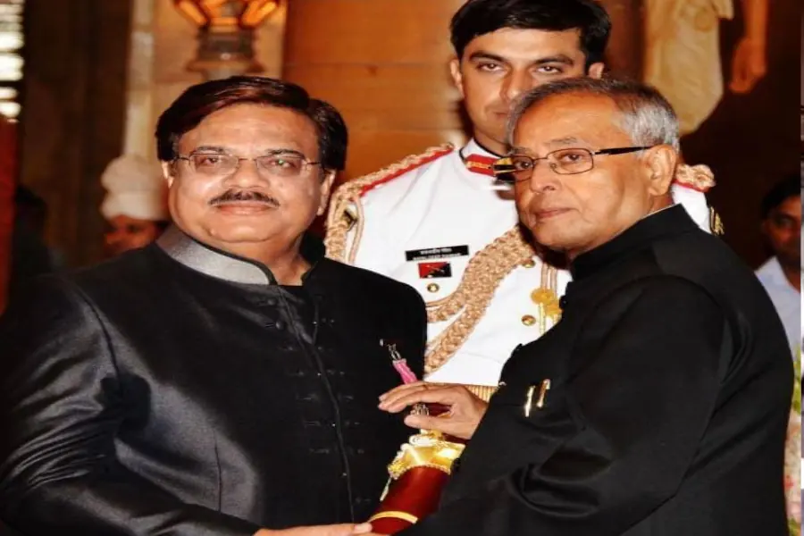 শাকির আলি রাষ্ট্রপতি প্রণব মুখোপাধ্যায়ের কাছ থেকে পদ্মশ্রী সম্মান গ্রহণের একটি দৃশ্য