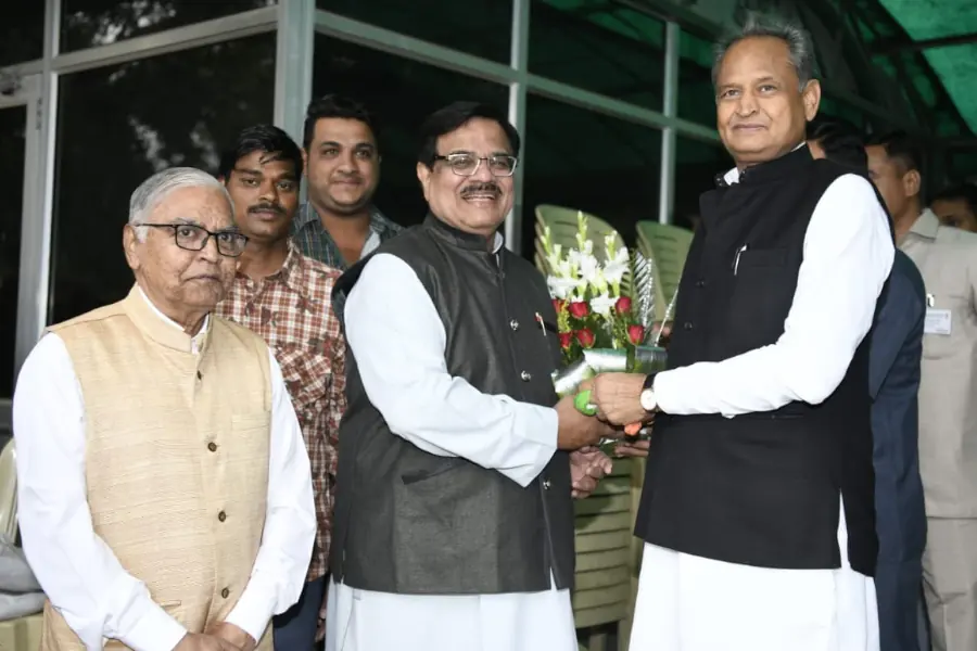 রাজস্থানের মুখ্যমন্ত্রী গেহলট শাকির আলিকে সংবর্ধনা জানানোর একটি দৃশ্য