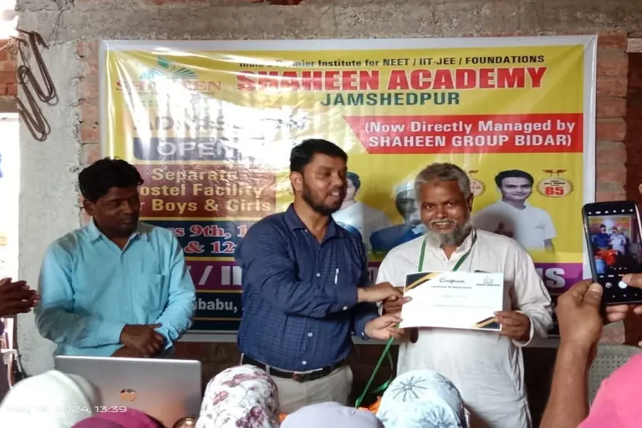 শাহীন একাডেমিতে মুজাফ্ফর হুসেনকে সম্মানিত করার একটি মুহূর্তে