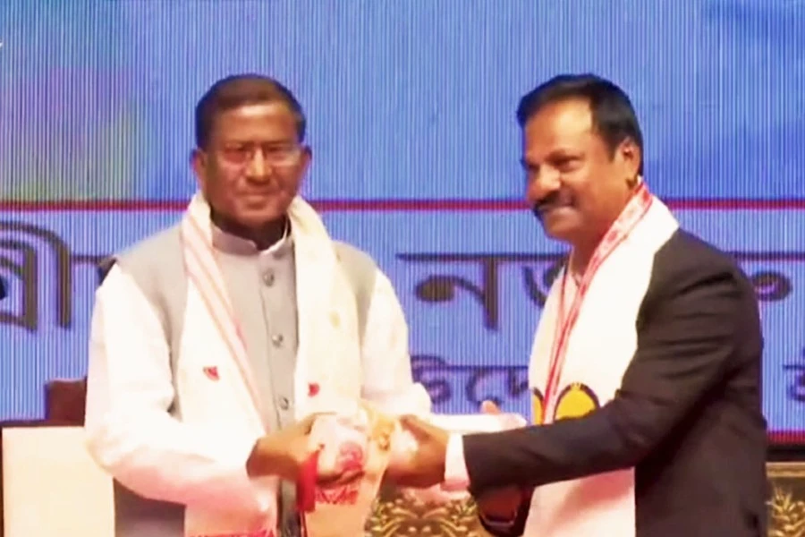 রাজ্যপালের থেকে গৌরব’ পুরস্কার গ্রহন করছেন