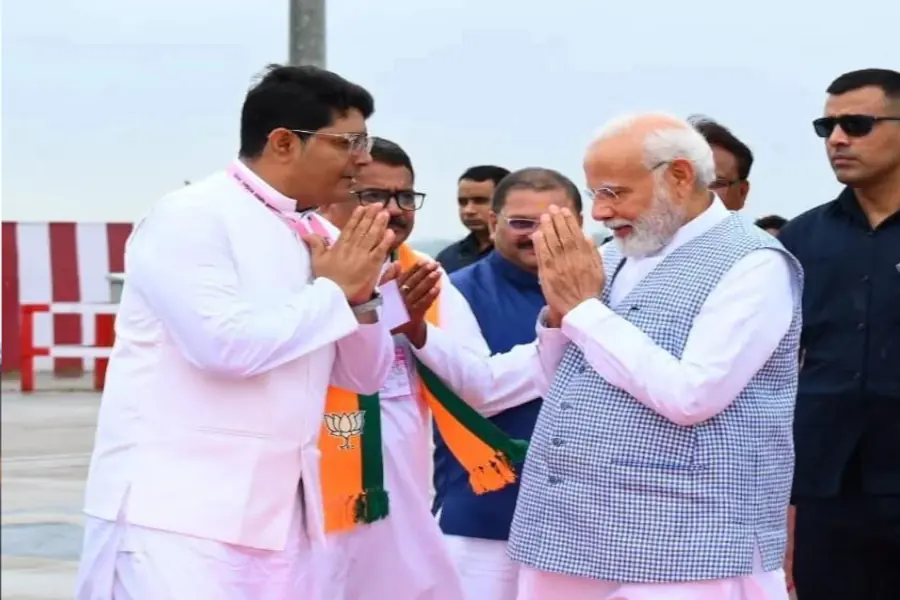 প্রধানমন্ত্রী নরেন্দ্র মোদির সঙ্গে এজাজ ধেবরের সাক্ষাৎকারের একটি মুহূর্ত