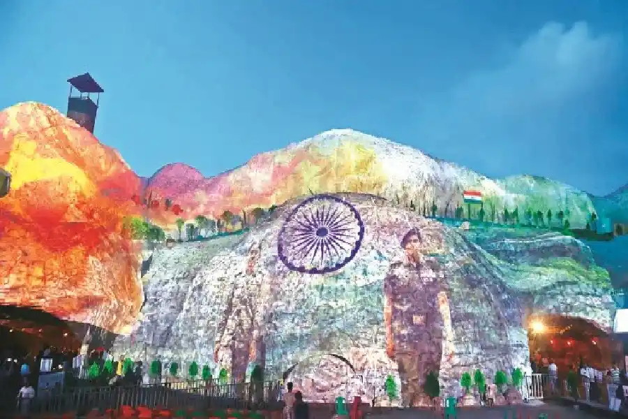 একটি তিন মিনিটের লাইট অ্যান্ড সাউন্ড শো-তে ‘অপারেশন সিন্দুর’ প্রদর্শন করা হচ্ছে, যেখানে ট্যাঙ্ক থেকে ধোঁয়া ও শব্দ বের হচ্ছে। শিল্পীরা জম্মু-কাশ্মীর হামলায় নিহত পশ্চিমবঙ্গের দুই পর্যটক, বিতান অধিকারী ও সমীর গুহর কাহিনীও মঞ্চস্থ করেছেন।