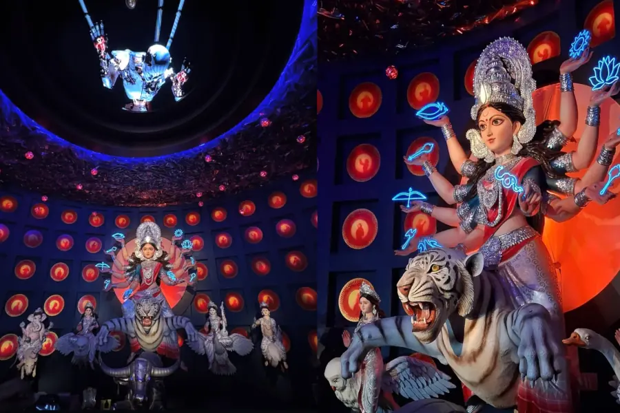 জগৎ মুখার্জি পার্কে ভবিষ্যতের কৃত্রিম বুদ্ধিমত্তা (AI)- প্রধান বিশ্বের এক ঝলকসহ একটি পুজো মণ্ডপ নির্মাণ করা হয়েছে