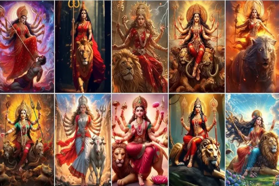 নবরাত্রির নয় রূপে দেবী দুর্গার মহিমাময় প্রকাশ ( এ আই)