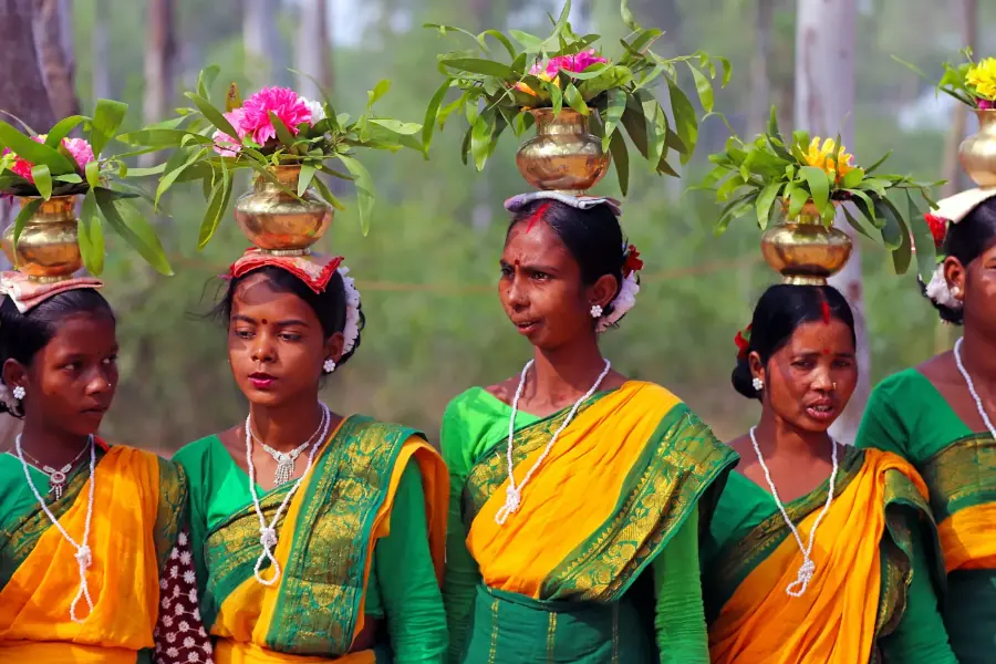 শান্তিনিকেতনের পৌষমেলায় সাংস্কৃতিক নৃত্য পরিবেশনের একটি দল