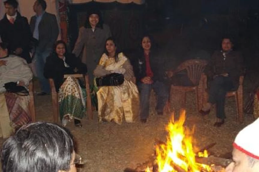 উরুকার রাতে একসঙ্গে জেগে থেকে আগুনের উষ্ণতা নেওয়ার দৃশ্য