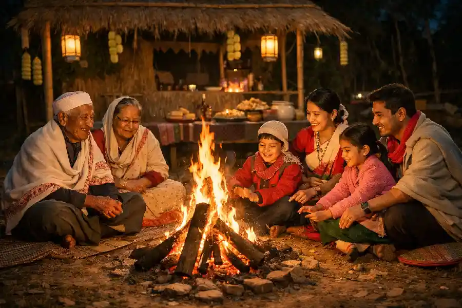উরুকার রাতে পরিবারের সদস্যদের একসঙ্গে বসে সময় কাটানোর দৃশ্য