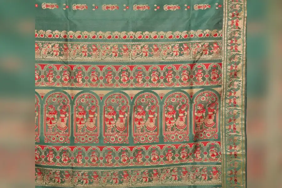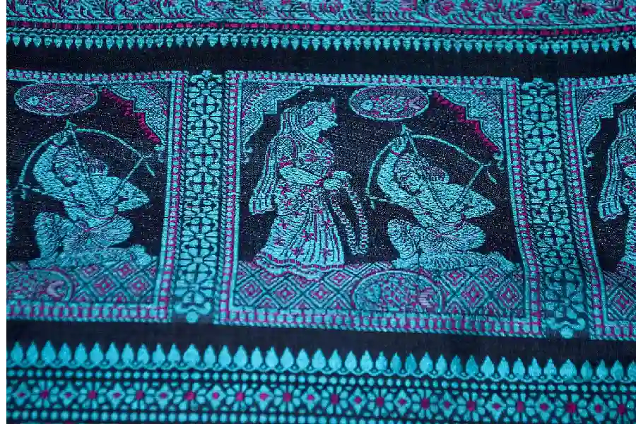 গাঢ় নীল মালবেরি সিল্কের জমির উপর আজও রামায়ণ–মহাভারতের দৃশ্য বোনা হয় বিষ্ণুপুরের তাঁতে। কিন্তু সেই বালুচরি আর পুরোটা আগের মতো নেই। বিষ্ণুপুরের প্রবীণ বয়নশিল্পী শ্রীমন্ত দাস স্মৃতিচারণায় বলেন, “ছোটবেলায় বালুচরির আঁচলে বাবু-বিবি, হুঁকো ধরা রাজপুরুষ, রেলগাড়িতে বসা মেমসাহেব দেখতাম। এখন সেসব নকশা আর বোনা হয় না।” তাঁর কথায় স্পষ্ট, বালুচরির বদল শুধু নকশার নয়, এ এক সাংস্কৃতিক রূপান্তরের গল্প।