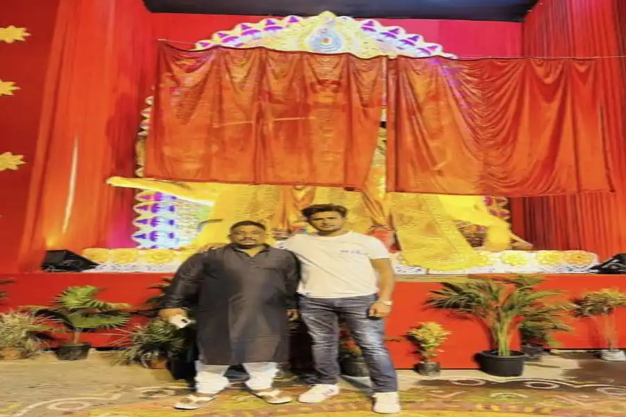 শিলিগুড়ির কলেজপাড়ার জগদ্ধাত্রী পুজো কমিটির সচিব সৌরভ ভাস্কার (বাঁ দিকে) এবং সহ-সচিব রুস্তম আলম