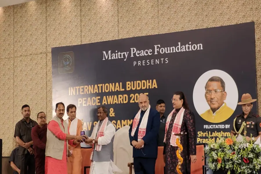উত্তম দাসের "মৈত্রী পিস অ্যাওয়ার্ড" গ্রহণ করার একটি দৃশ্য