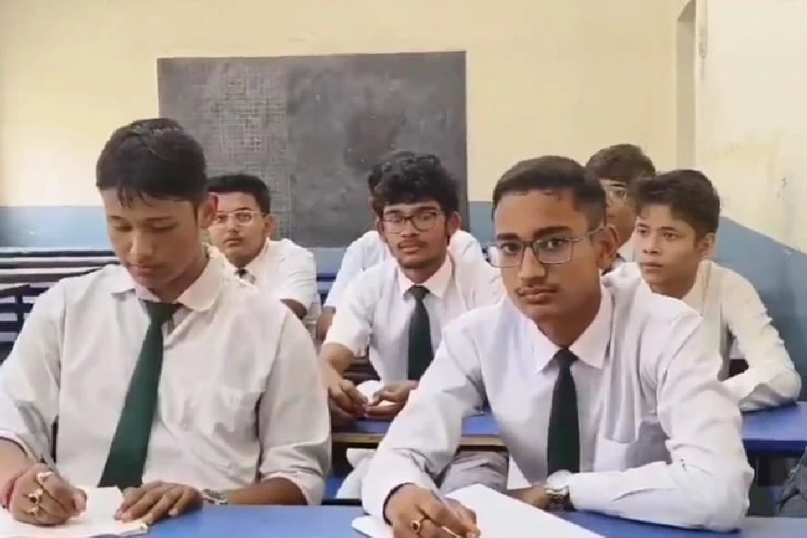 বিদ্যালয়ের শ্রেণিকক্ষে সহপাঠীদের সঙ্গে শেখ আরিয়ান রহমান