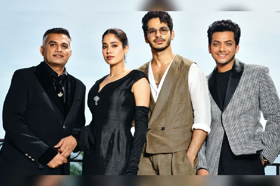 ফিল্মমেকার নীরজ ঘেওয়ানের সঙ্গে হোমবাউন্ড ছবির অভিনেতা ঈশান খ্ট্টর, বিশাল জেঠওয়া ও অভিনেত্রী জাহ্নবী কাপুর