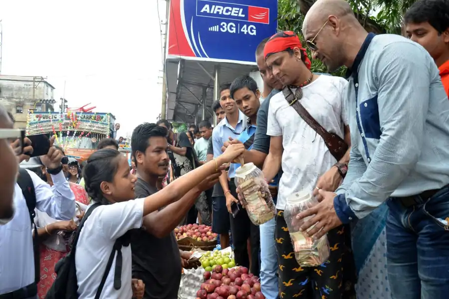 বন্যার্তদের জন্য পুঁজি সংগ্রহের সময় শিল্পী জুবিন গার্গের একটি দৃশ্য