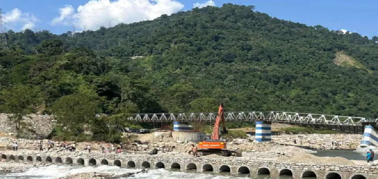 দুধিয়ায় বালাসন নদীর ওপর অস্থায়ী সেতুর নির্মাণ প্রায় সম্পূর্ণ, সোমবার থেকে শুরু হতে পারে চলাচল শুরু হতে পারে