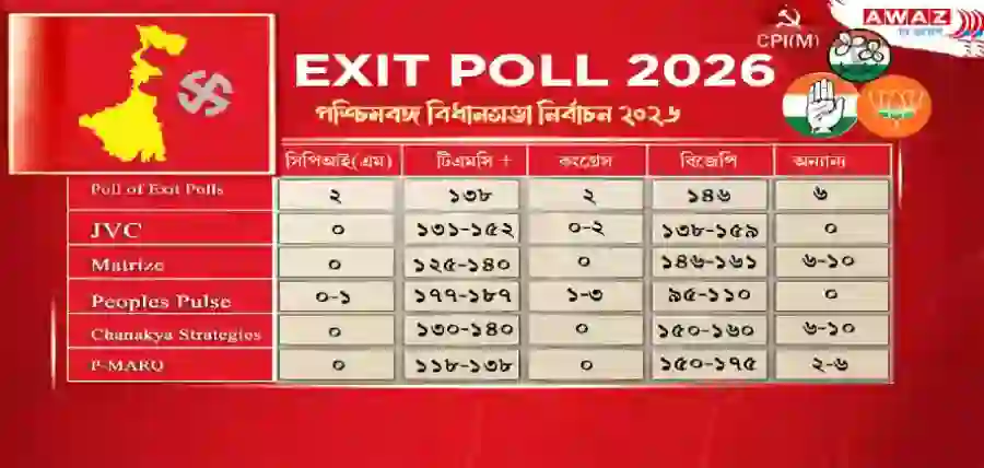 পশ্চিমবঙ্গ বিধানসভা নির্বাচন শেষে প্রকাশিত বিভিন্ন এক্সিট পোলে হাড্ডাহাড্ডি লড়াইয়ের ইঙ্গিত মিলেছে। কিছু সমীক্ষায় বিজেপিকে স্পষ্ট এগিয়ে দেখানো হয়েছে, আবার কোথাও তৃণমূল কংগ্রেস (TMC)-কে জোরালো টক্কর দিতে দেখা যাচ্ছে।