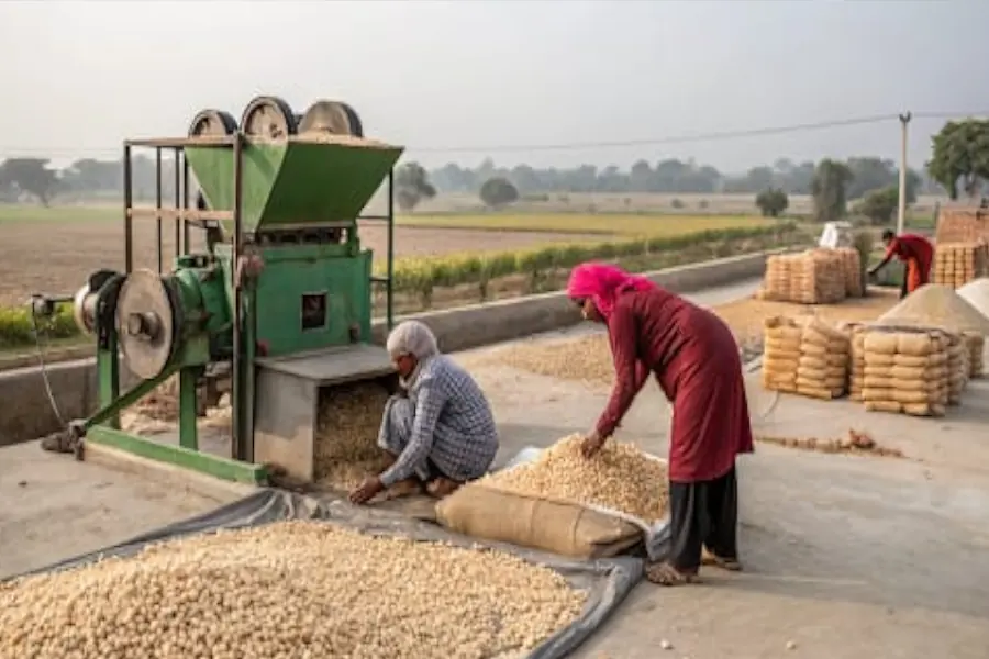 মিথিলার মাখানা প্রক্রিয়াকরণ কারখানায় কর্মরত মহিলারা