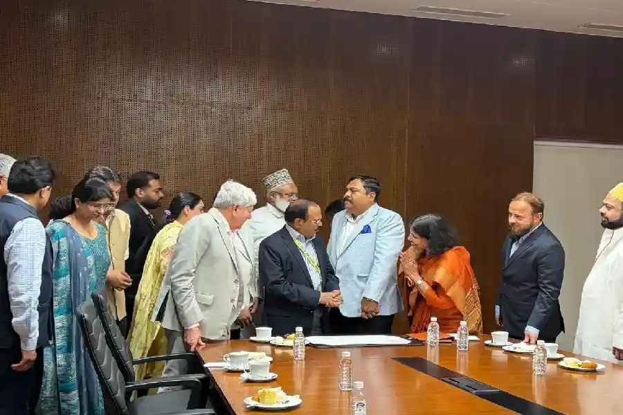 জাতীয় নিরাপত্তা উপদেষ্টা অজিত ডোভাল মুসলিম সম্প্রদায়ের বিশিষ্ট নাগরিকদের সঙ্গে অনুষ্ঠিত বৈঠকের একটি দৃশ্য