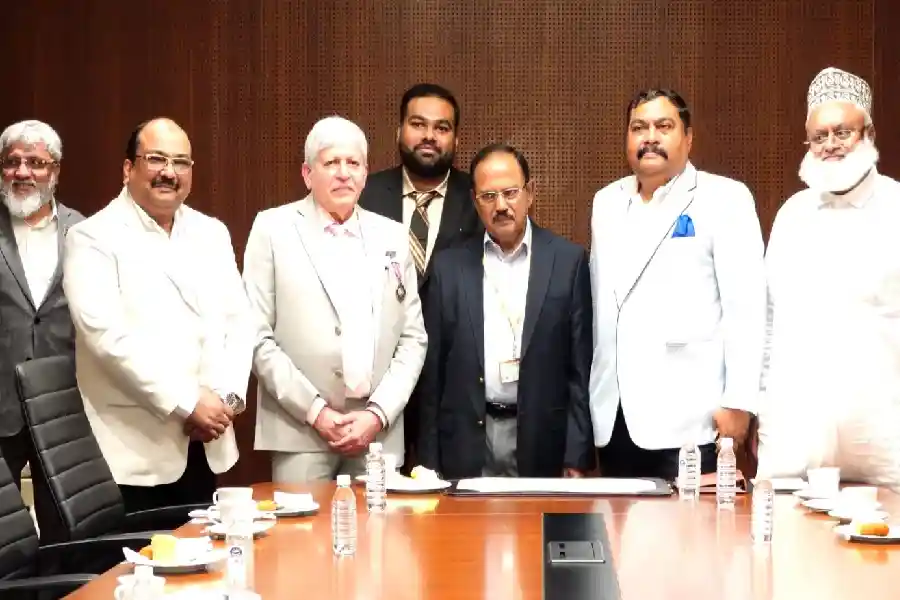 জাতীয় নিরাপত্তা উপদেষ্টা অজিত ডোভাল মুসলিম সম্প্রদায়ের বিশিষ্ট নাগরিকদের সঙ্গে এক গুরুত্বপূর্ণ বৈঠকে মিলিত হন। বৈঠকের সময় তিনি দেশের সাম্প্রতিক পরিস্থিতি এবং সম্প্রদায়টির অংশগ্রহণ নিয়ে খোলামেলাভাবে মতামত ব্যক্ত করেন। ডোভাল উল্লেখ করেন যে, গত ১২ বছরে রেকর্ড সংখ্যক মুসলিম যুবক-যুবতী সেনা ও আধাসামরিক বাহিনীতে যোগদান করেছেন।
