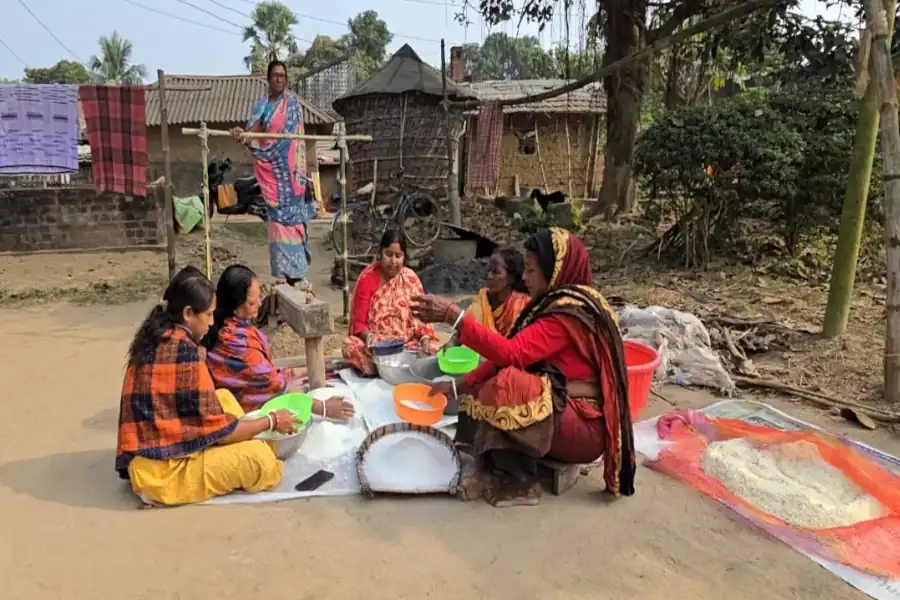 পৌষ পার্বণ উপলক্ষে গ্রামের মহিলারা পিঠে পুলি তৈরির প্রস্তুতি নেওয়ার এক দৃশ্য (ফাইল)
