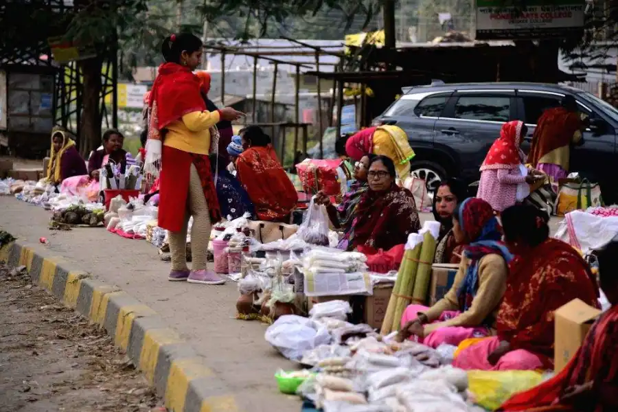 শহরের রাস্তার পাশে মহিলারা পিঠে বিক্রি করার এক দৃশ্য (ফাইল)