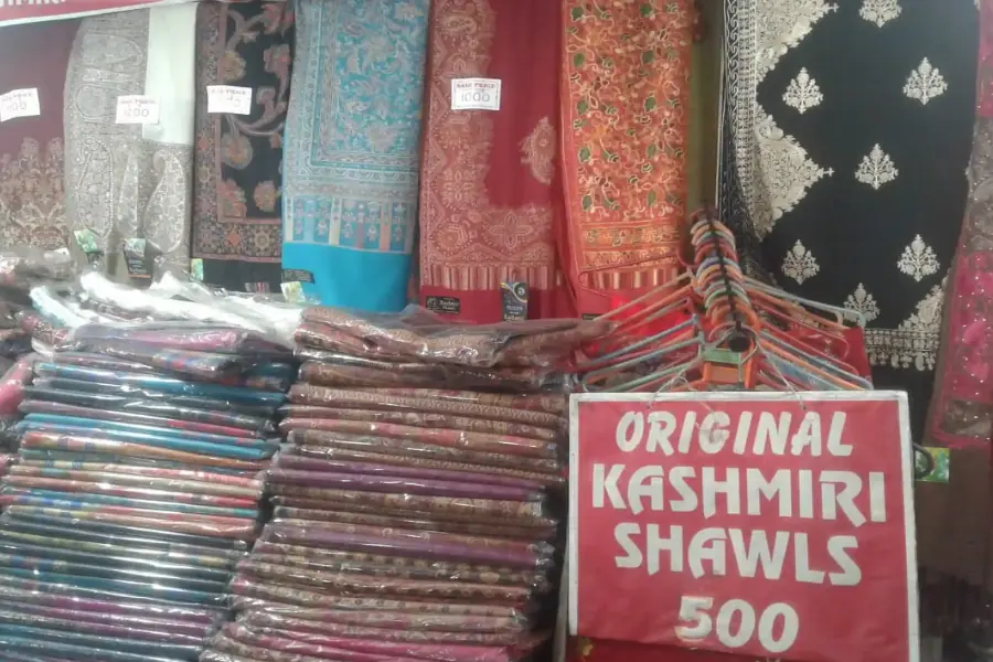 দোকানে কাশ্মীরি শালের প্রদর্শনী