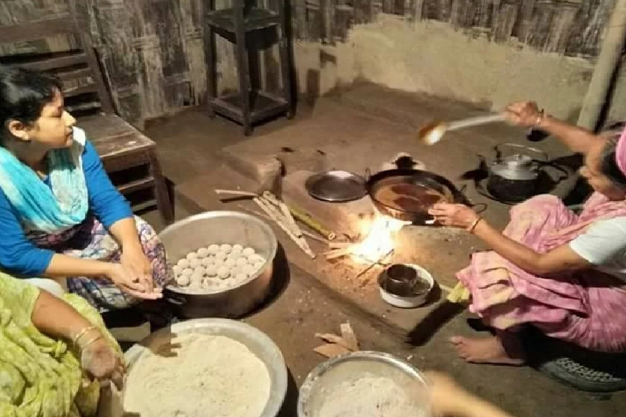 বিহুর পিঠা-পানা তৈরিতে ব্যস্ত গ্রামের নারীরা