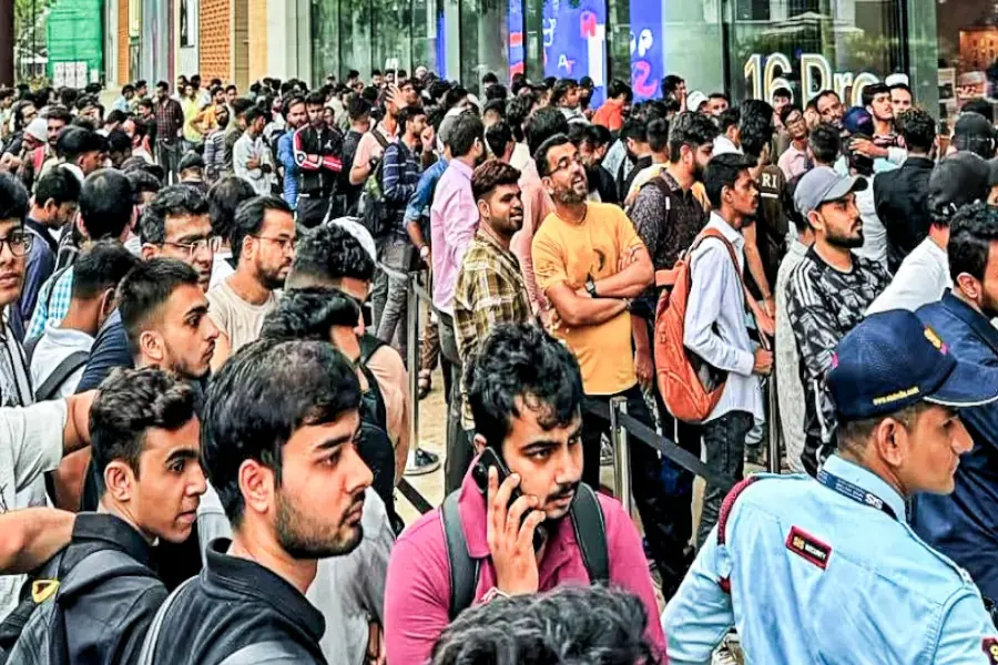 রাতের গভীরে, অ্যাপল স্টোরের বাইরে ভিড়, এ দৃশ্য সাধারণত ভারতের কেনাকাটার সংস্কৃতির সঙ্গে খাপ খায় না। তবুও দিল্লি বা মুম্বইয়ের শীত-গরম উপেক্ষা করে শত শত যুব পেশাজীবী হুডি গায়ে, হাতে কফির কাপ নিয়ে লাইনে দাঁড়ান শুধু নতুন আইফোন হাতে নেওয়ার প্রথম মানুষ হতে, এটাই হয়ে উঠেছে ভারতের এক নতুন, বারবার দেখা যায় এমন দৃশ্যপট। এক দশক আগে, রাতভর লাইনে দাঁড়িয়ে আইফোন কেনা ছিল পাশ্চাত্য পপ সংস্কৃতির অংশ। আজ, তা ভারতের নিজস্ব আকাঙ্ক্ষার পরিবর্তিত বর্ণনার অঙ্গ।
