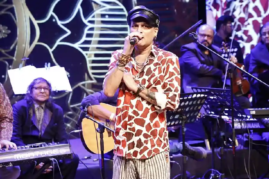একটি অনুষ্ঠানে জুবিন গর্গের গীত পরিবেশন করার দৃশ্য