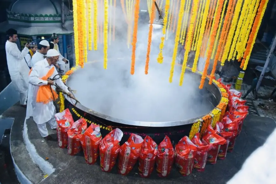 আজমের শরীফ দরগায় ডেগে রান্না করার একটি দৃশ্য