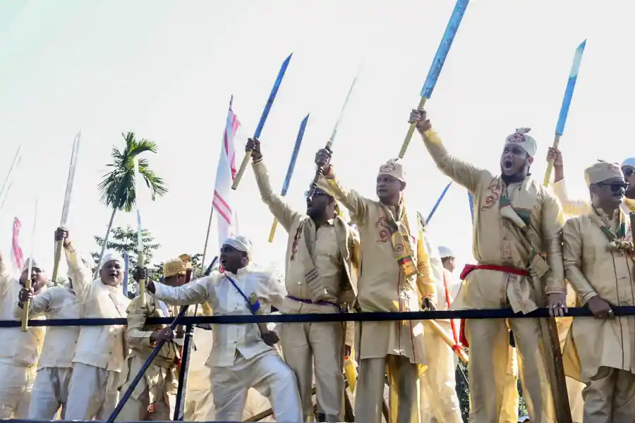অসমের ইতিহাস স্মরণে আয়োজিত অনুষ্ঠানে অংশগ্রহণকারী তরুণ পুরুষ ও নারী
