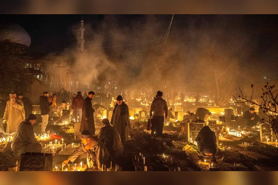 শবে বরাতের দিন পূর্বপুরুষদের কবরে মানুষের মোমবাতি জ্বালানোর দৃশ্য