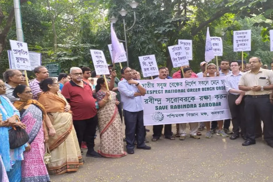 রবীন্দ্র সরোবর রক্ষার জন্য সংঘটিত আন্দোলনের একটি দৃশ্য