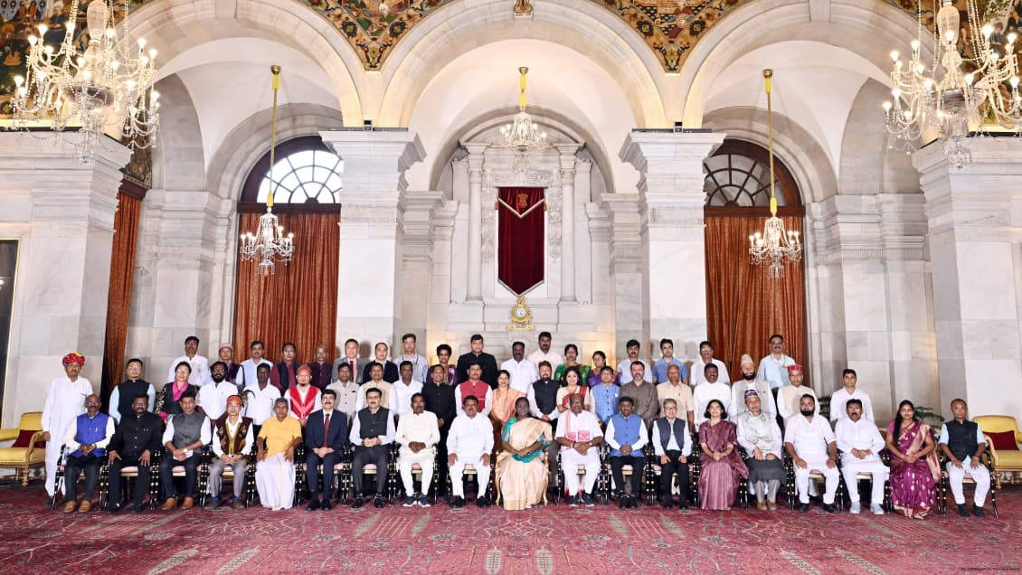 রাষ্ট্রপতি দ্রৌপদী মুর্মুর সঙ্গে উপজাতি নেতাদের গ্রুপ ফটো