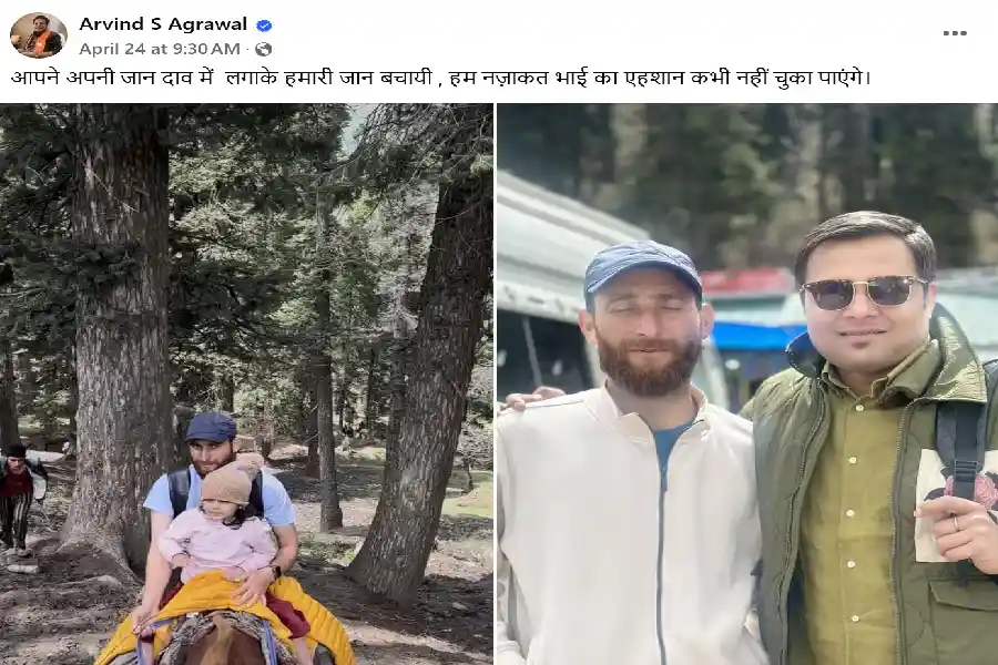 স্থানীয় ব্যবসায়ী নাজাকত আলি তাদের উদ্ধার করতে এসে হত্যাকারীদের সামন থেকে কোন পথে তাদের নিরাপদে বের করবে তা কেউ নিশ্চিত ছিল না। কিন্তু পরিস্থিতির গুরুত্ব বোঝে নিজের বুদ্ধিমত্তা ব্যবহার করে নাজাকত দায়িত্ব নিয়ে পর্যটকদের নিরাপদ স্থানে নিয়ে গিয়েছিলেন। নাজাকত দুঃখ প্রকাশ করে বলেন, পাহেলগামের সেই হামলায় নিহত ২৬ জনের মধ্যে আমার মামার ছেলে ও ছিলেন।