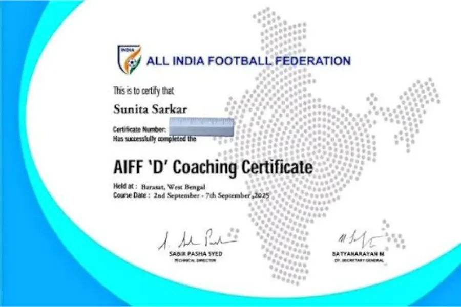 এআইএফএফ থেকে প্রাপ্ত সুনিতা সরকারের কোচ লাইসেন্স
