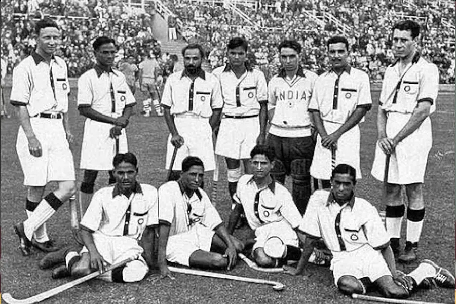 ১৯৩৬ সালে বার্লিনে ভারতের হকি দল, স্বর্ণপদক বিজয়ী ধ্যান চাঁদের নেতৃত্বে (বাম দিক থেকে দ্বিতীয় স্থানে)