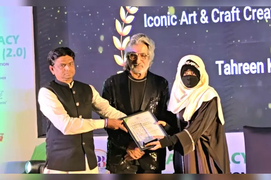 এক অনুষ্ঠানে অভিনেতা শক্তি কপুরের হাতে সম্মান গ্রহণের মুহূর্তে