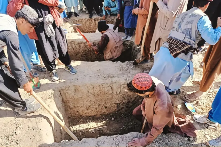 আফগানিস্তানের পূর্বাঞ্চলীয় পাকতিকা প্রদেশে পাকিস্তান সেনার সীমান্ত পার বিমান হামলায় নিহতদের কবর খুঁড়ছেন স্থানীয় মানুষজন
