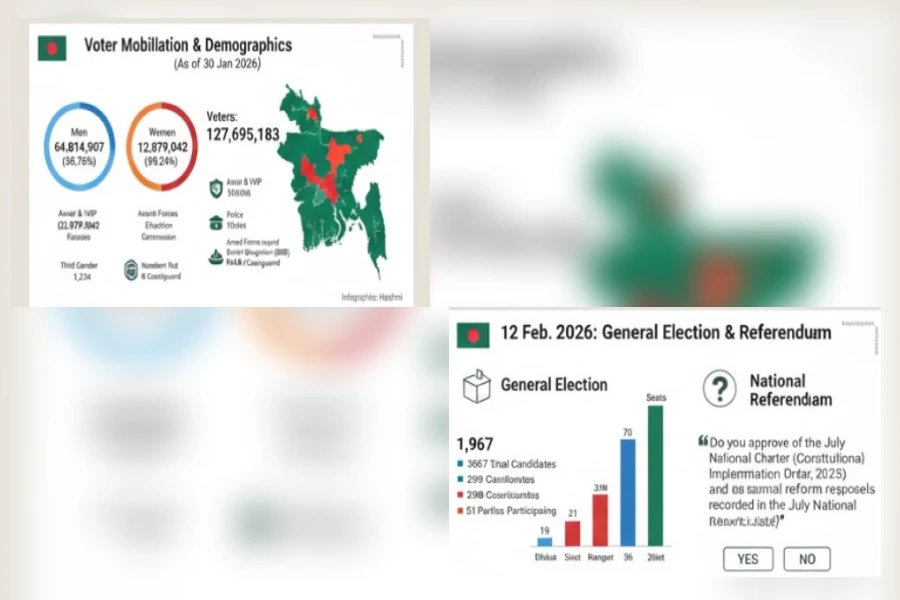 এ নির্বাচনে তাই শুধু দল বা প্রার্থী নয়, ভোটারদের সামনে রয়েছে নিরাপত্তা, অর্থনীতি, স্বাধীনতা, সংখ্যালঘু অধিকার, নারীর অধিকার এবং গণতন্ত্রের অস্তিত্ব রক্ষার প্রশ্ন। ১২ ফেব্রুয়ারি সেই উত্তরের দিন।